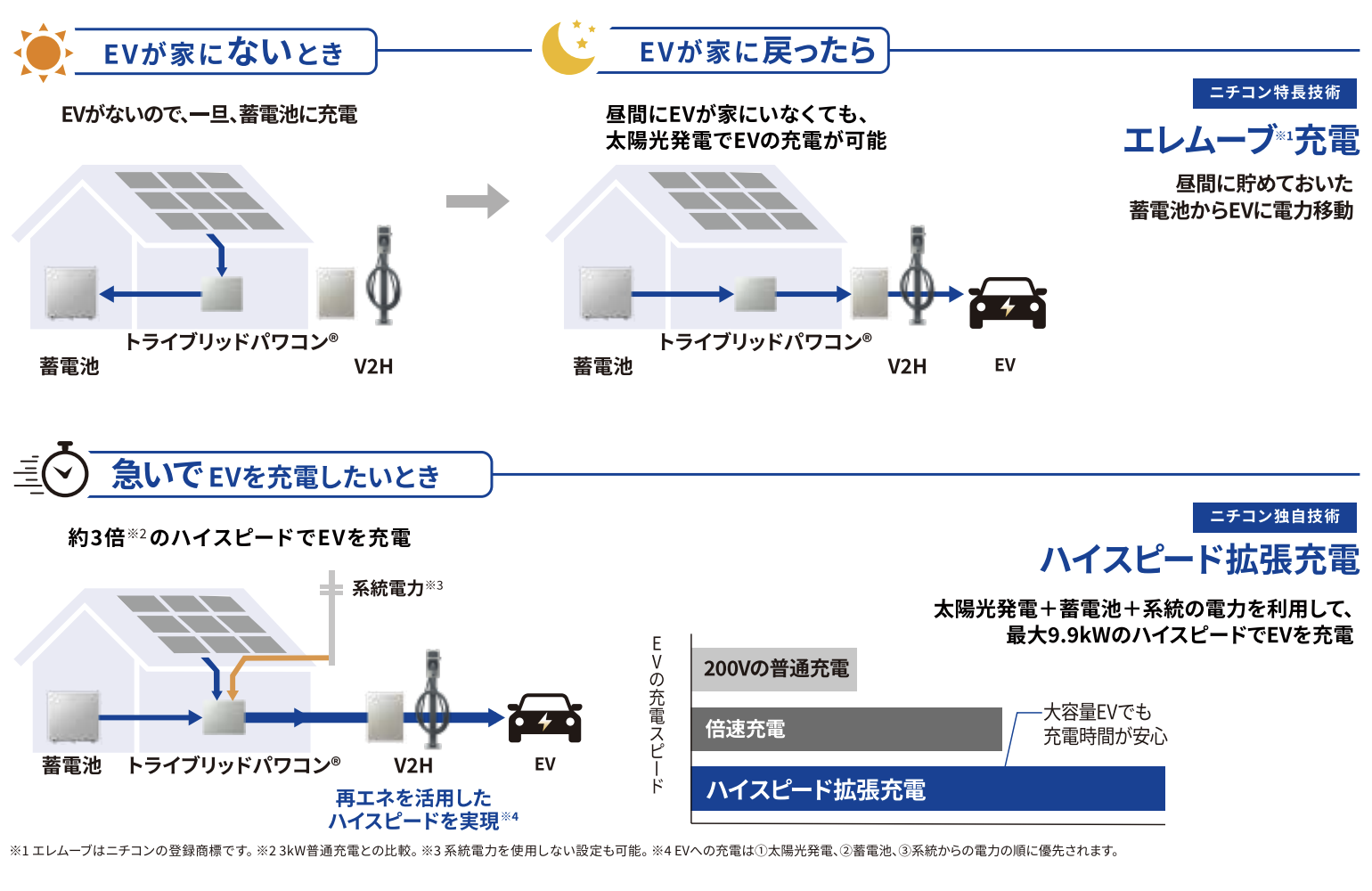 できる場合はエレムーブ充電、できない場合はハイスピード拡張充電を自動で設定します。