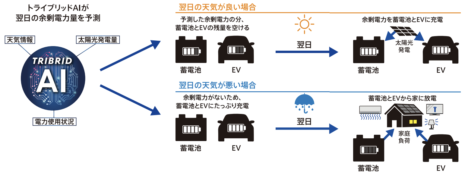TRIBRID AI が蓄電池とEVを自動制御