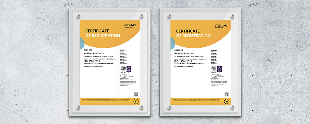 和上ホールディングスは、数多くの機関から認められた実績と信頼性を誇る会社です。環境保護や品質管理において高い評価を受けております。