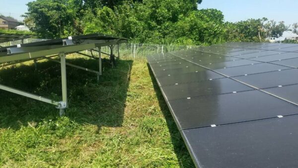 徳島県 49.5kW 低圧 メンテナンス今回は除草要請があり、現地へ入りました。植物がパネルの周りに広がっていました。機器に雑草が干渉しなようにできる限り取り除きました。