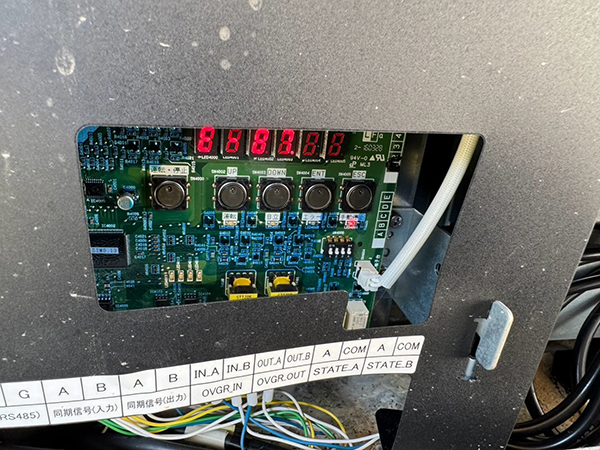 京都府 駆付け 49.5Kw 低圧パワコンの発電量が低下しているとのことで、駆付け現地入りいたしました。4台目のPCSが停止しており、リセットボタン等で再起動を実施いたしましたが起動せず修理・交換が必要と判断しました。各系統電圧及び絶縁抵抗に異常はありませんでした。