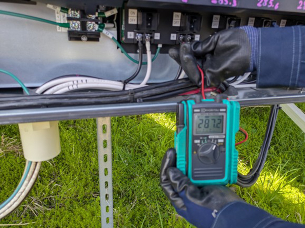 和歌山県 44kW 低圧和歌山県で定期メンテナンスを行いました。電気点検で電圧の安全を確認しました。ケーブルのたるみもしっかり直しました。
