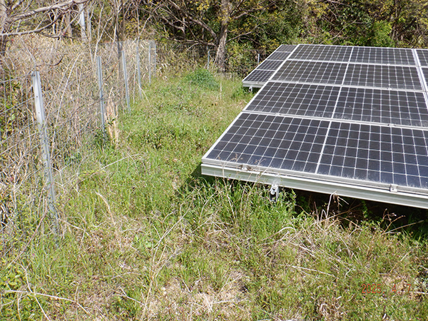 和歌山県 49.5kW 低圧和歌山県の発電所にて除草作業を行いました。お客様のご要望もあり、フェンスの草もきれいにしました。夏は一番発電量が多いので、稼働の邪魔にならないように手入れします。