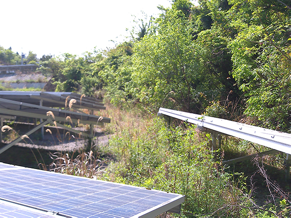 三重県 49.5kW 低圧三重県の発電所で草刈り作業を行いました。防草シートを敷いているとはいえ間から草が生えている状態でした。定期的なメンテナンスで刈り取って発電所をきれいに保ちます。